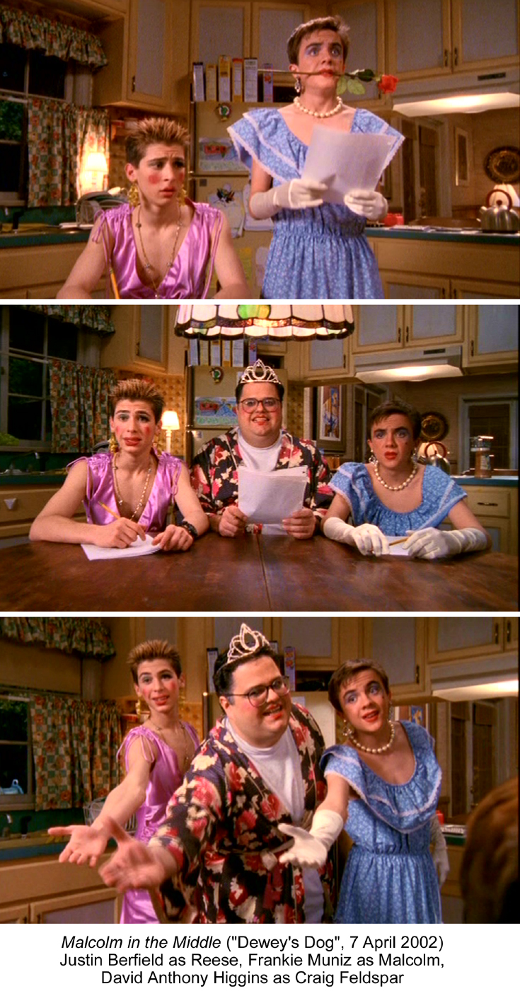 [unknown episode and date]: Jason (actor unknown) wears a dress to school for